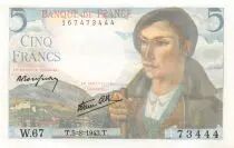 Billet France 5 Francs Berger - 05-08-1943 Série W.67 - NEUF
