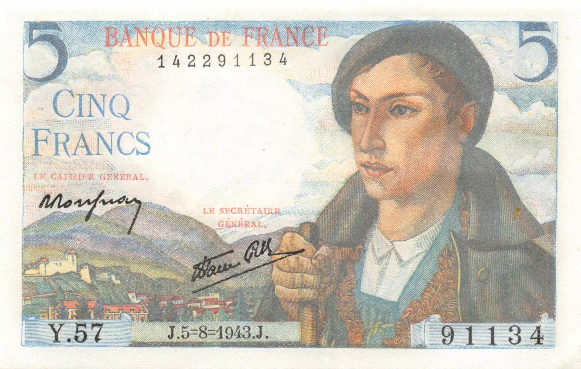 Billet France 5 Francs - Berger - 05-08-1943 - Série Y.57