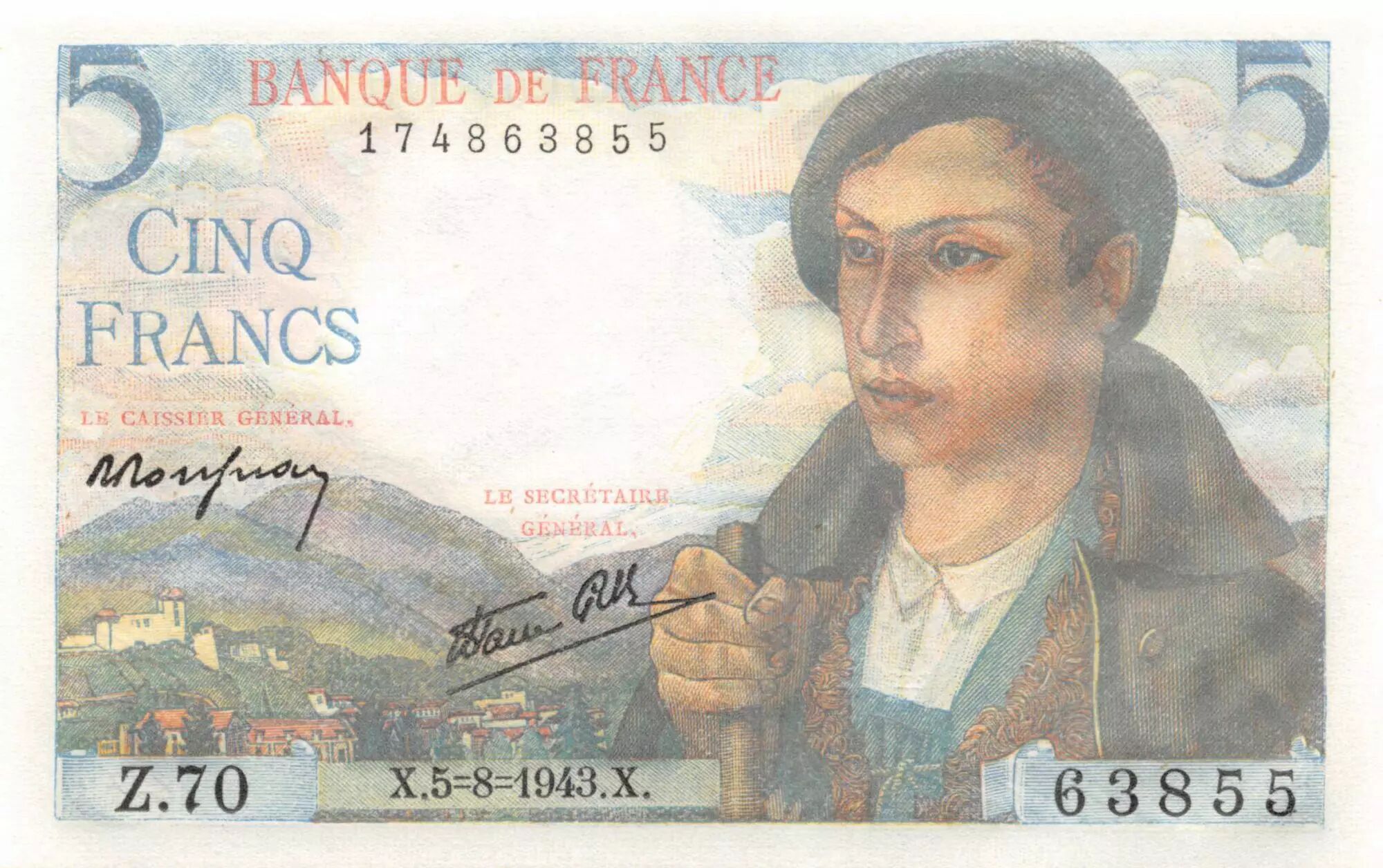 Billet France 5 Francs Berger - 05-08-1943 Série Z.70 - NEUF
