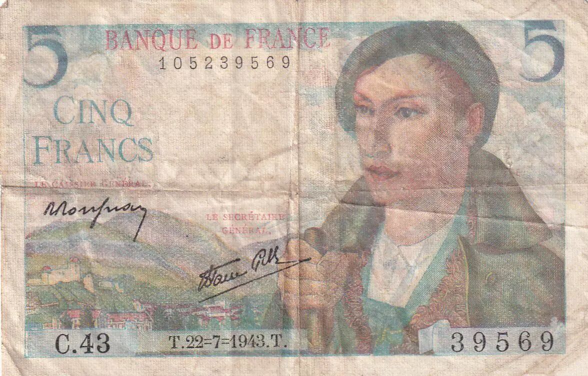 Billet France 5 Francs Berger - 22-07-1943 Série C.43