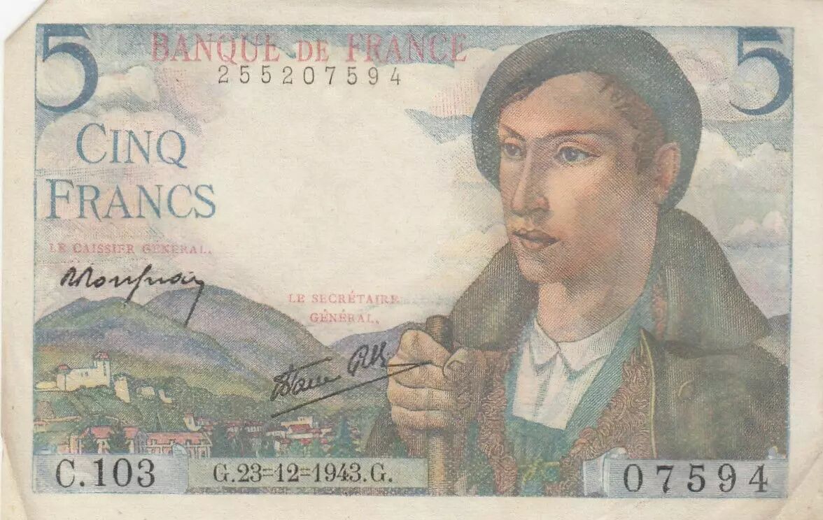 Billet France 5 Francs - Berger - 23-12-1943 - Série C.103