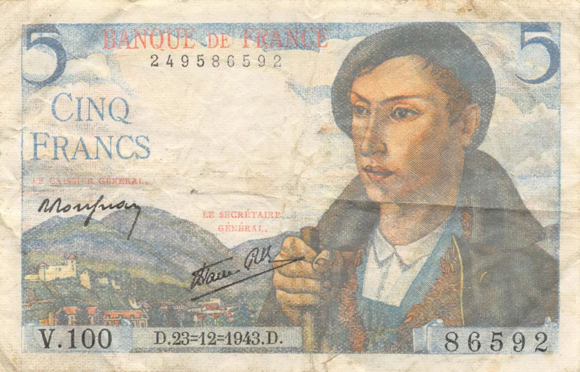 Accueil > Archivage > France 5 Francs Berger - 23-12-1943 Série V.100 - TB+