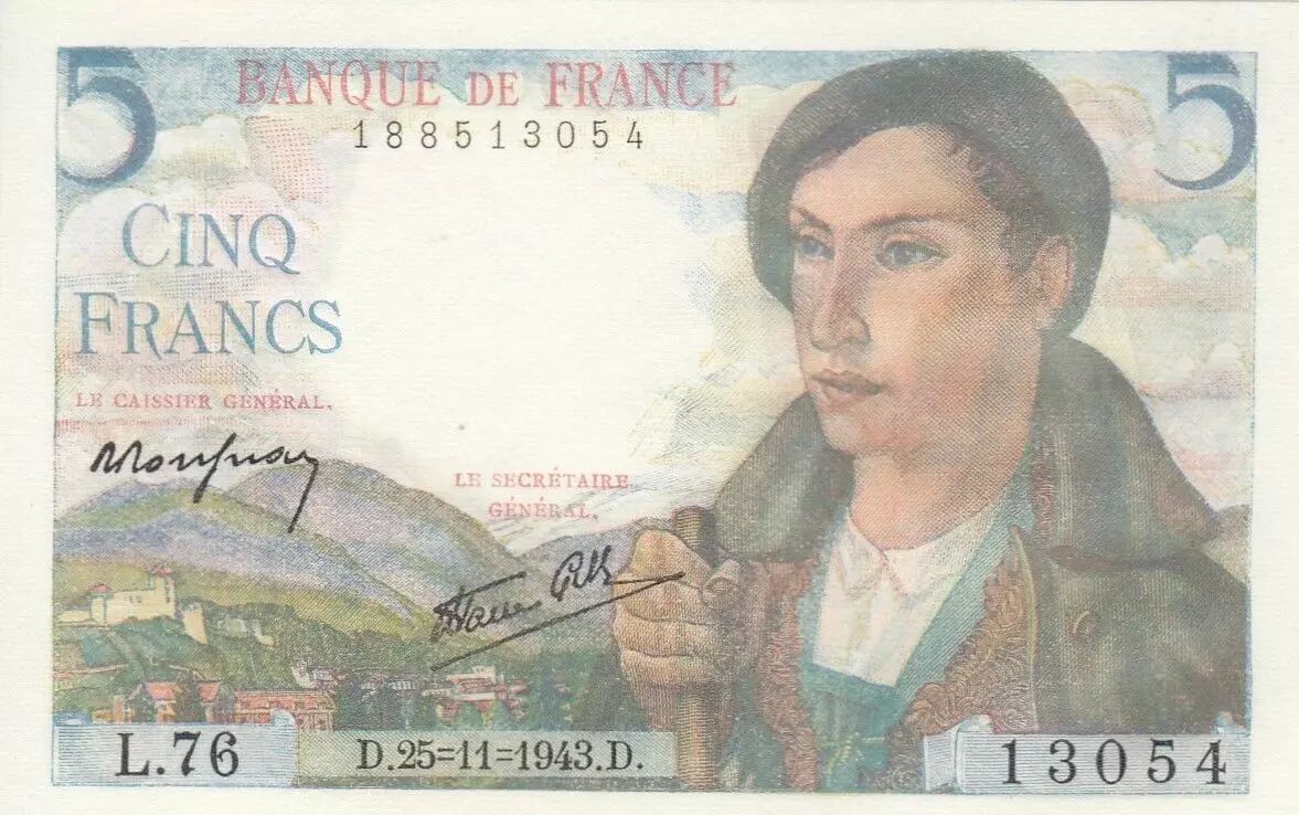 Billet France 5 Francs - Berger - 25-11-1943 - Série L.76