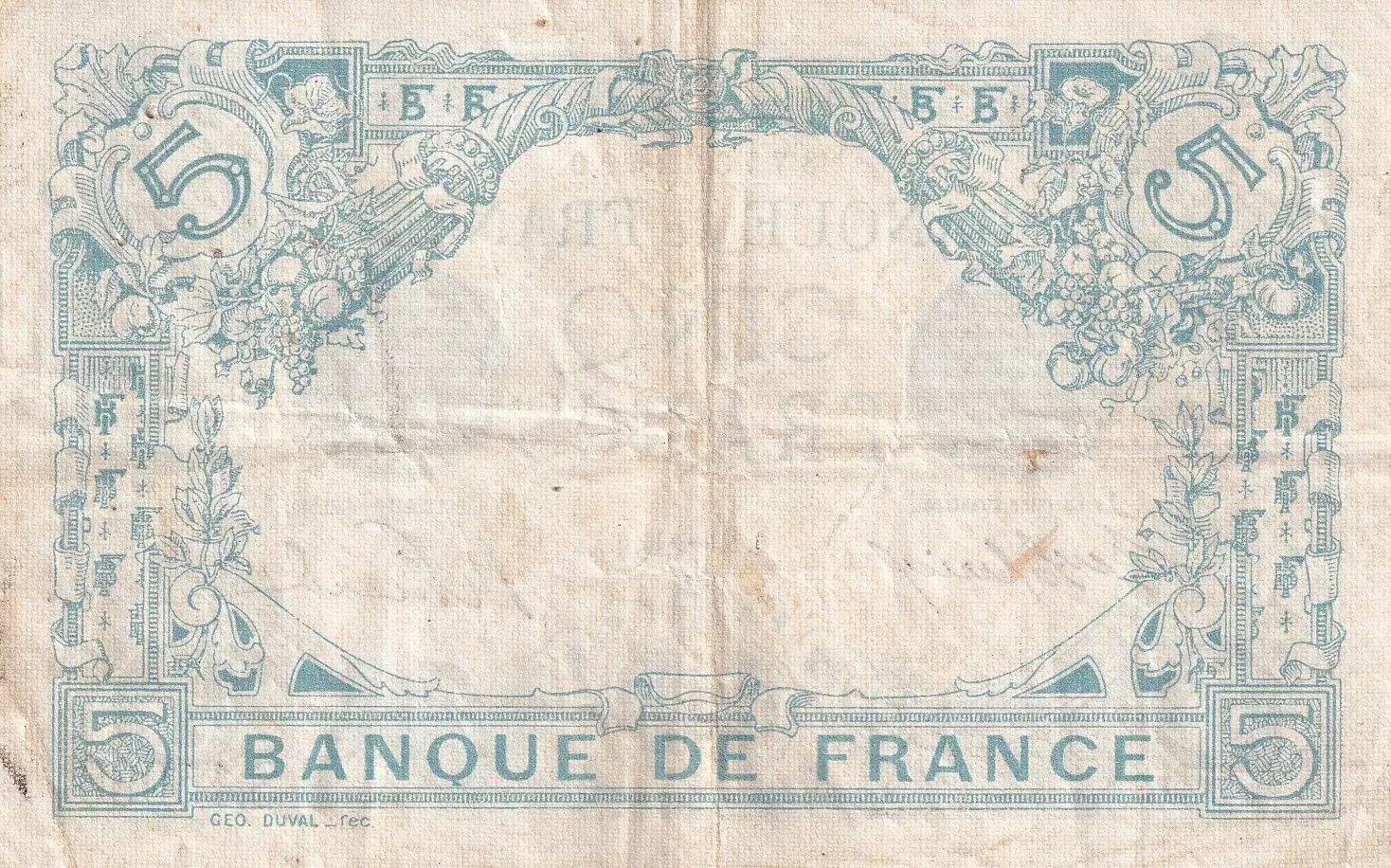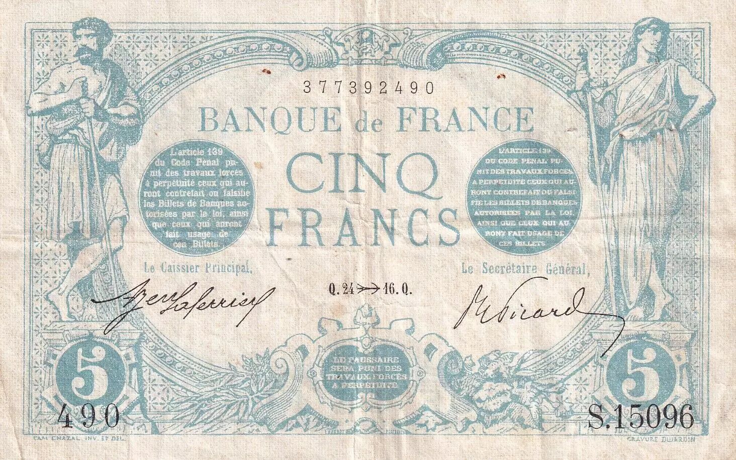 Accueil > Archivage > France 5 Francs - Bleu - 24-11-1916 - Série S.15096 - F.02.45
