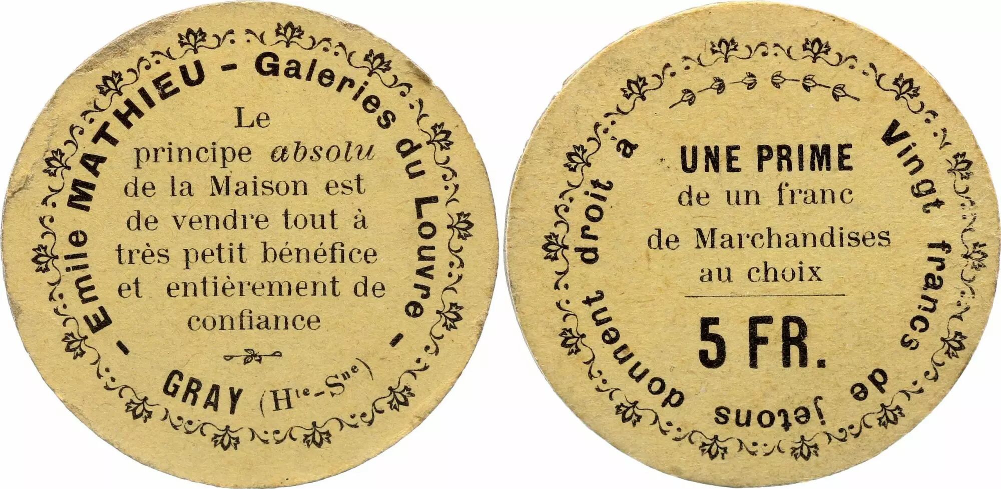Coin France 5 Francs - Bon Prime Emile Mathieu - Haute Saone - Galeries du Louvre