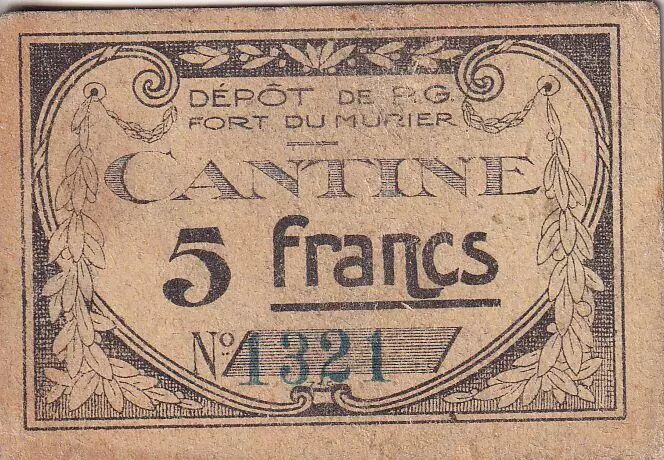Accueil > Archivage > France 5 Francs - Cantine - Dépôt de prisonniers de guerre Fort du Murier