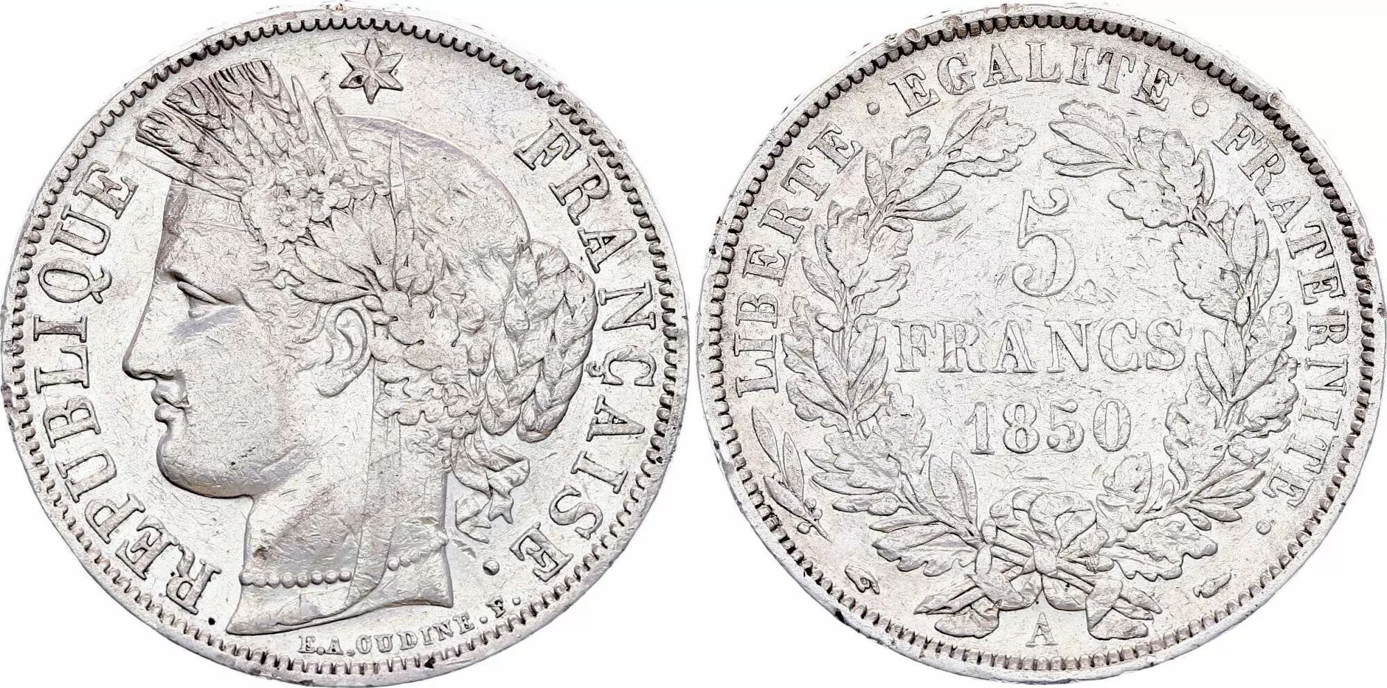 Pièce France 5 Francs Cérès - 1850 A Paris - Argent