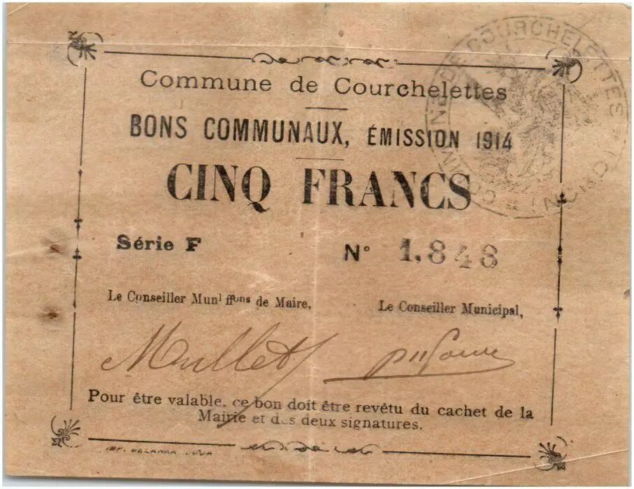 Billet France 5 Francs Courchelettes Commune - 1914