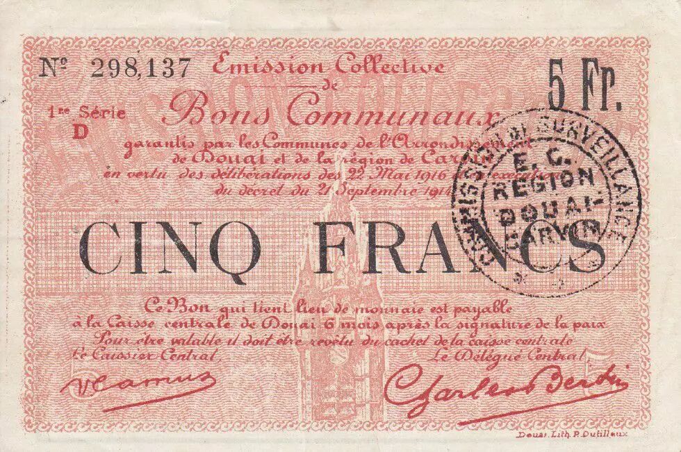 Billet France 5 Francs Douai Commune - 1914