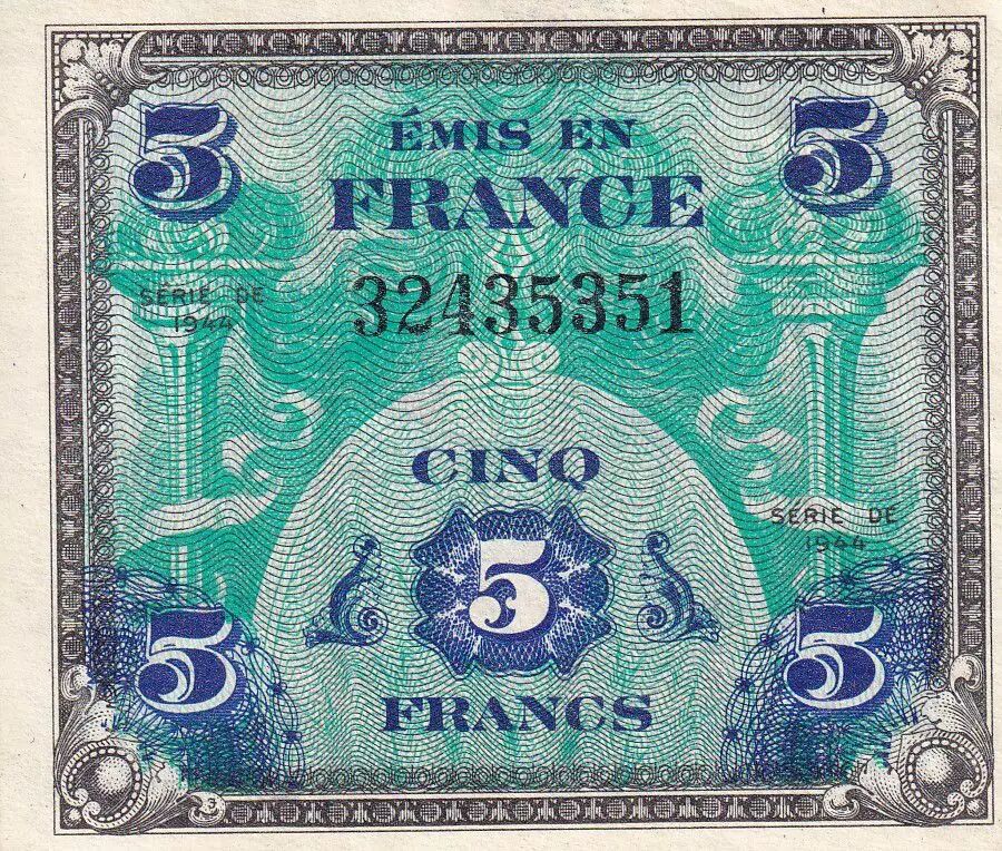 Accueil > Archivage > France 5 Francs - Drapeau - 1944 - Sans Série - SUP+ - VF.17.01
