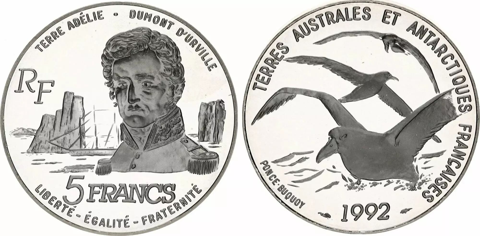 Home > > France 5 Francs Dumont d'Urville - 1992 - Terres Australes et Antartiques Françaises - Proof - Silver - without certificate