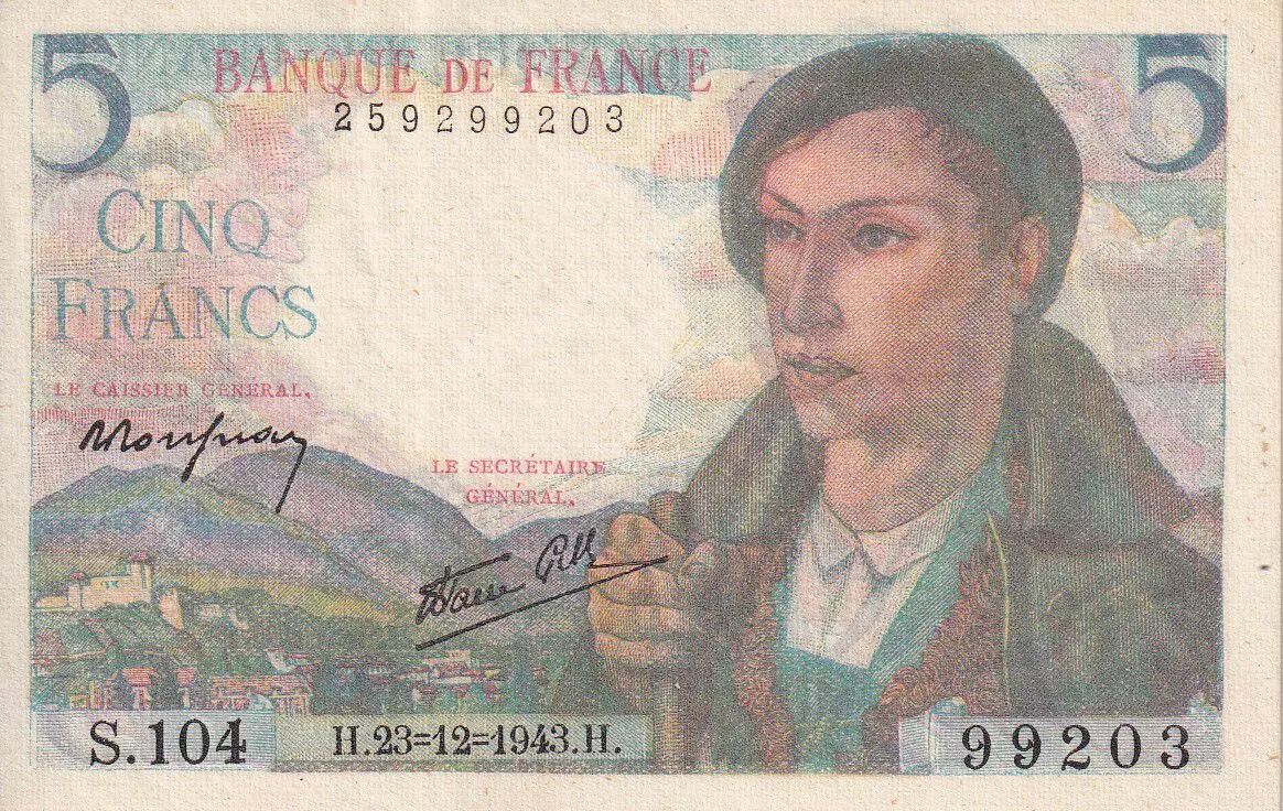 Home > > France 5 Francs - Farmer - 1943 - Serial S.104 - XF - P.98