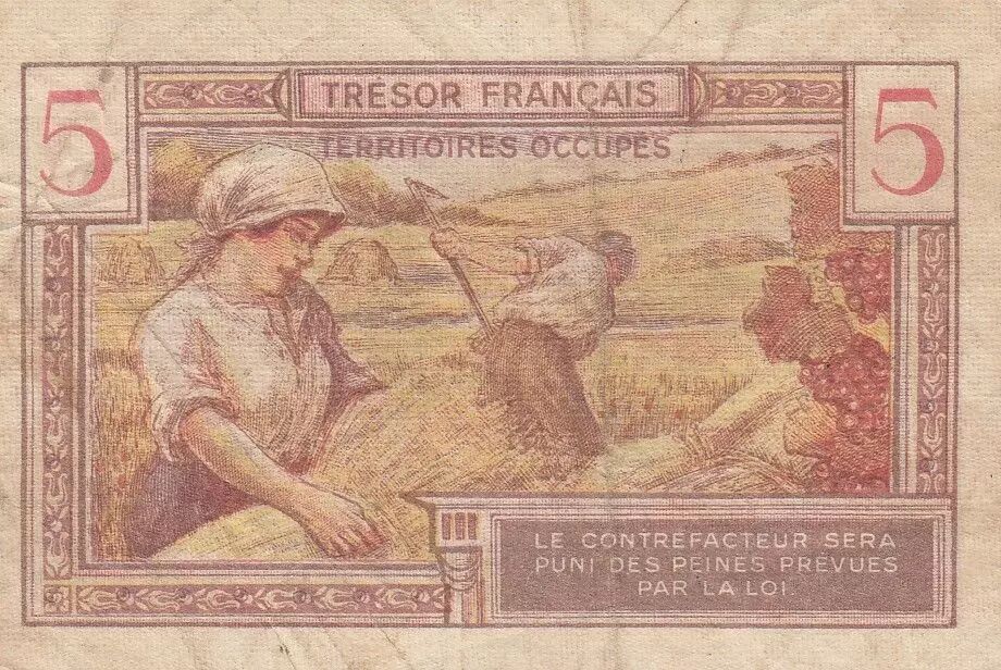 Banknote France 5 Francs - French Treasury - 1947 - Serial A.00672209