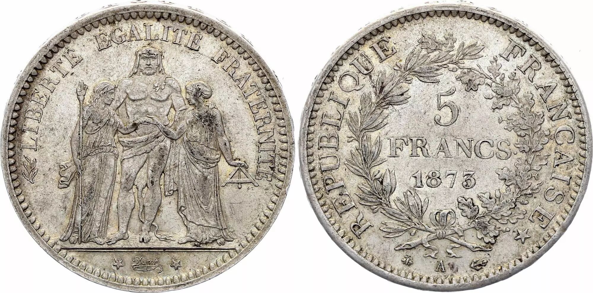 Pièce France 5 Francs Hercule 1873 A - Paris - Argent