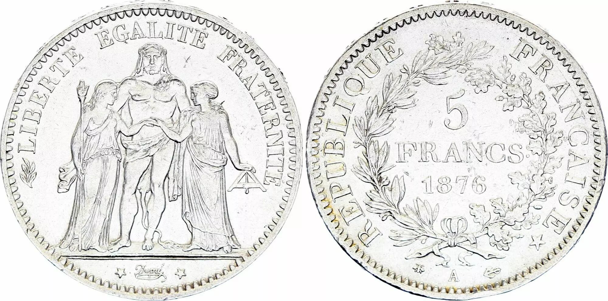 Pièce France 5 Francs - Hercule - 1876 A Paris - Argent