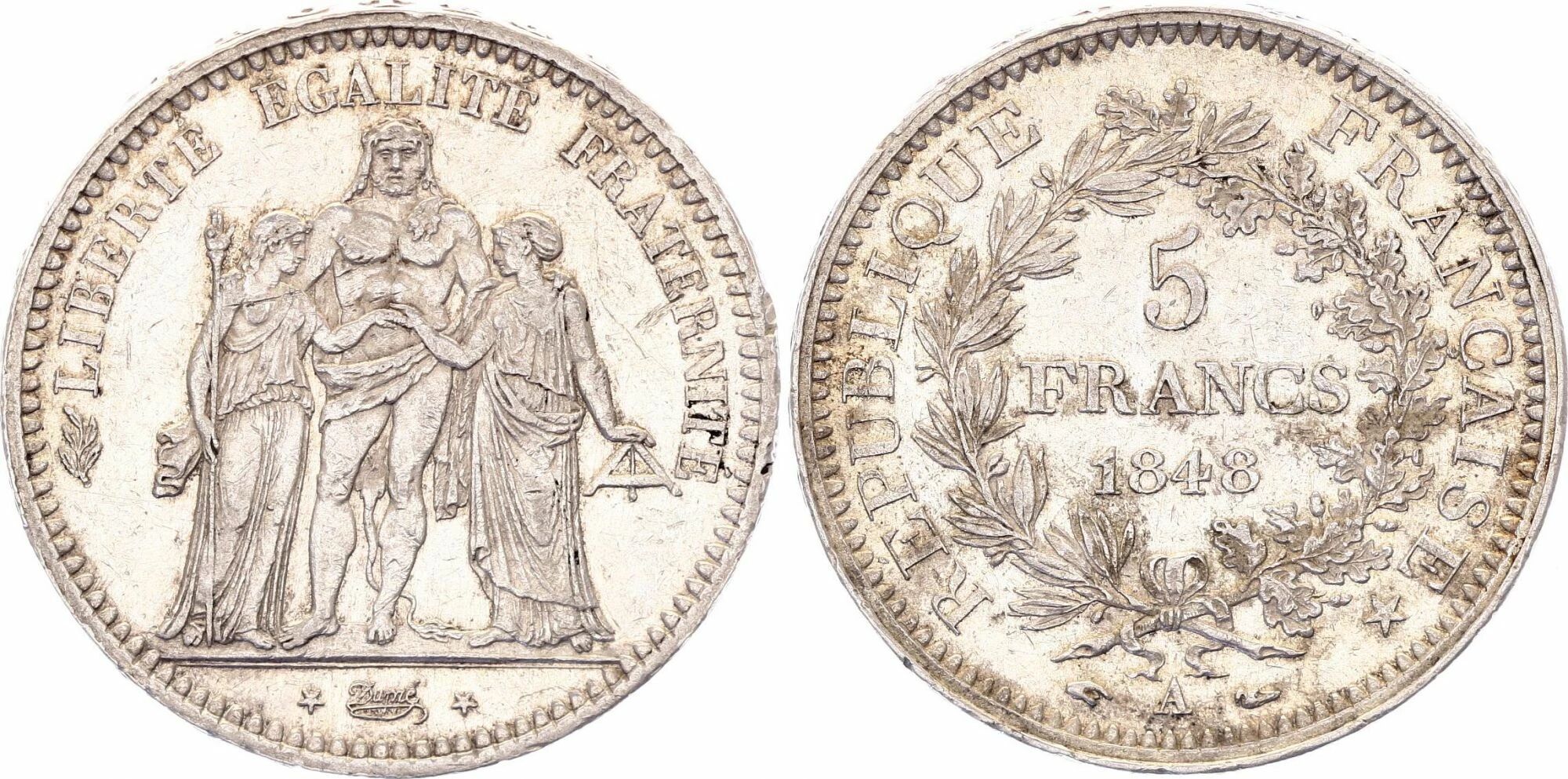 Cette pièce de monnaie est un spécimen de 5 Francs Hercule, émis durant la IIème République française en 1848. Frappée à l'atelier monétaire de Paris, identifié par la lettre "A", cette pièce représente une période spécifique de l'histoire numismatique française.