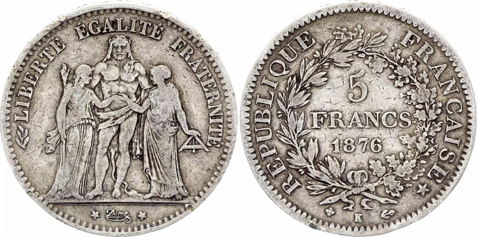 Pièce France 5 Francs Hercule - III e République 1876 K Bordeaux