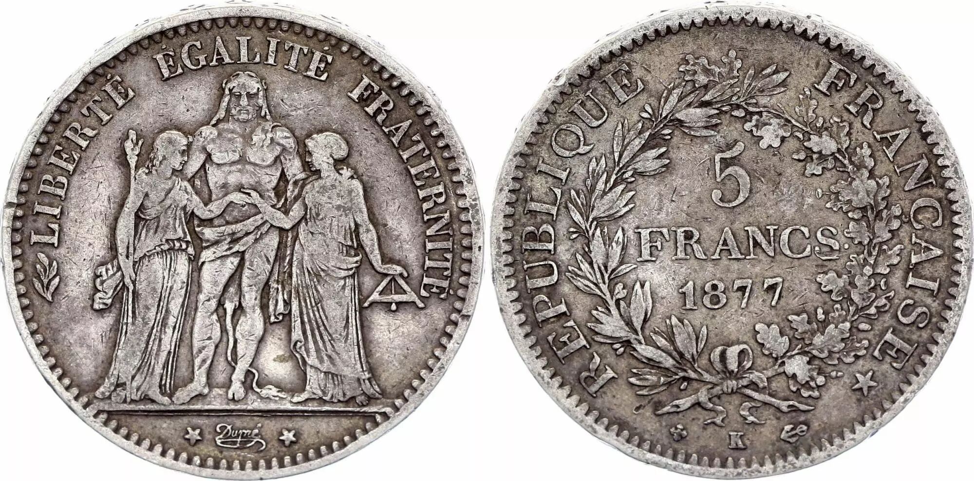Pièce France 5 Francs Hercule III e République - 1877 K Bordeaux