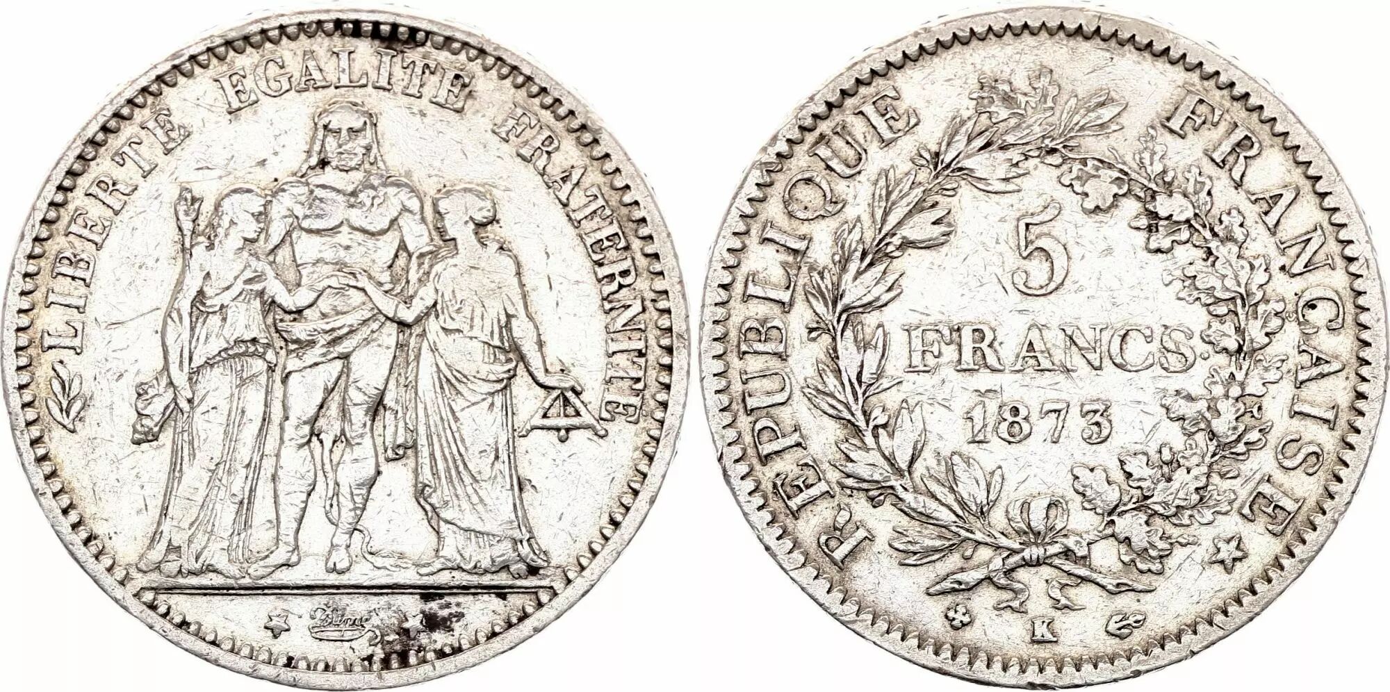 Accueil > Archivage > France 5 Francs Hercule - IIIème République 1873 K Bordeaux - Argent