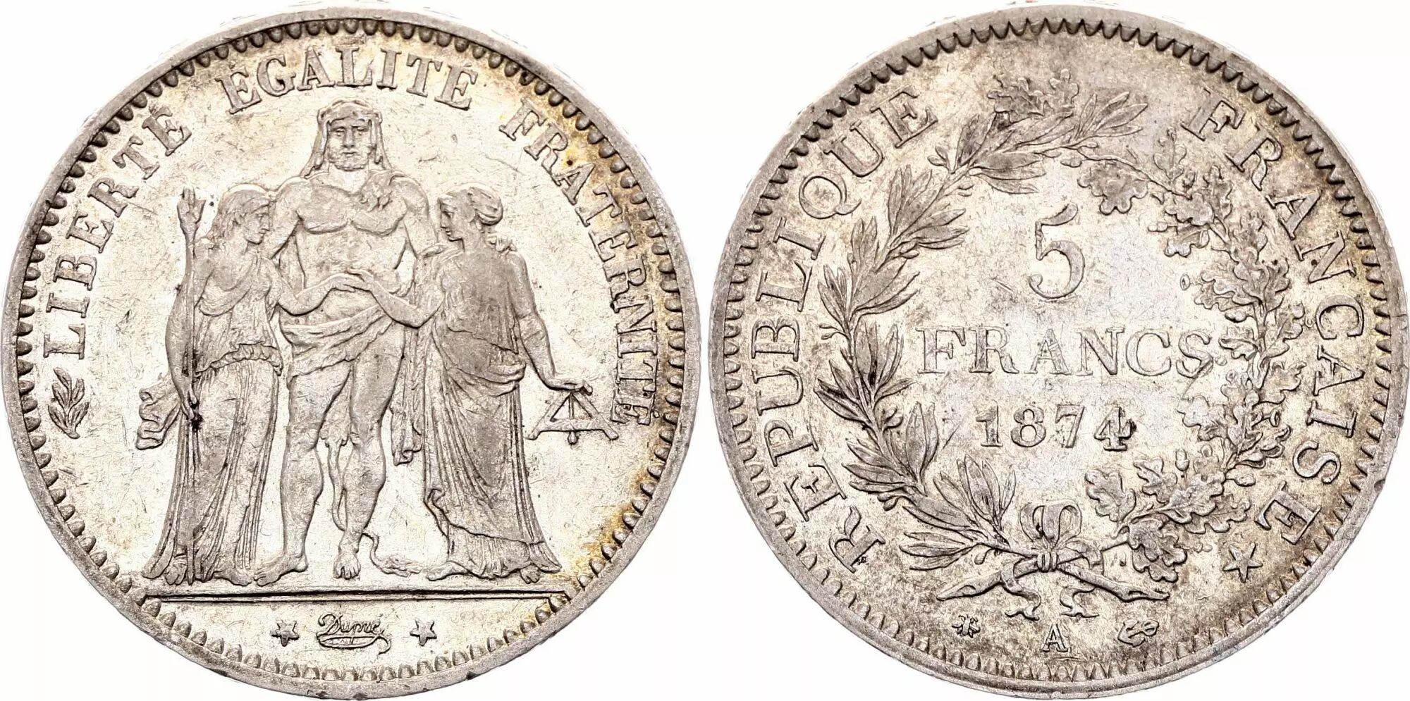 Pièce France 5 Francs Hercule - IIIeme République - 1874 A Paris