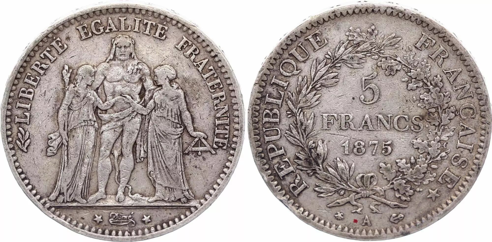Accueil > Archivage > France 5 Francs - Hercule - IIIeme République - 1875 A Paris - Argent