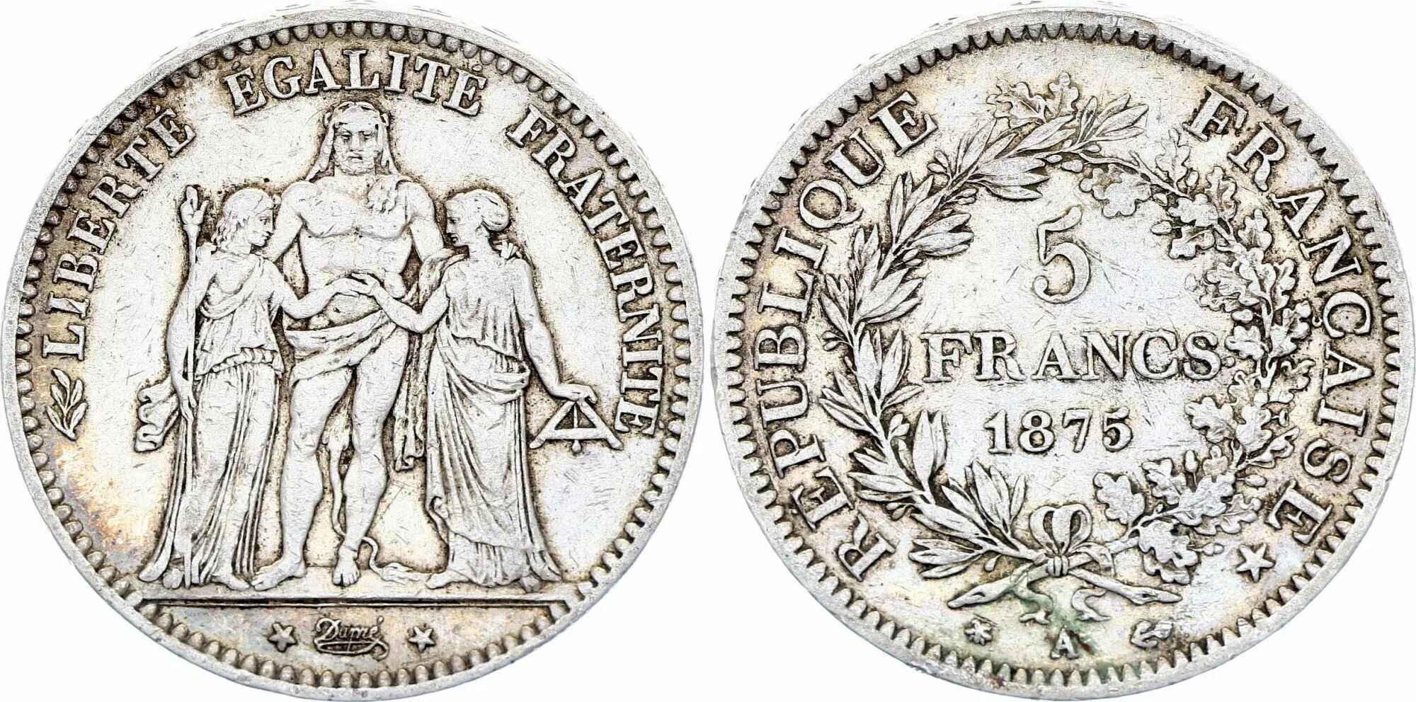 Pièce France 5 Francs - Hercule - IIIeme République - 1875 A Paris - Argent