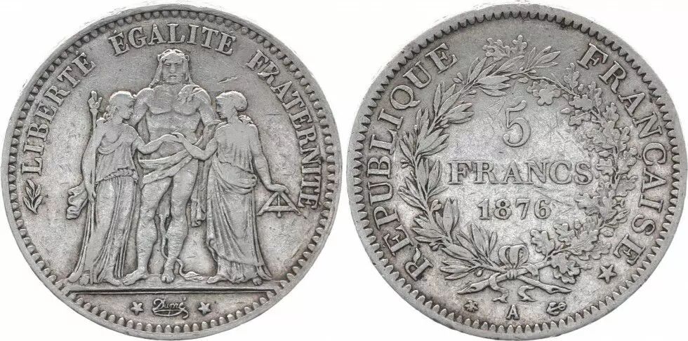 Pièce France 5 Francs Hercule - IIIeme République - 1876 A Paris - TTB