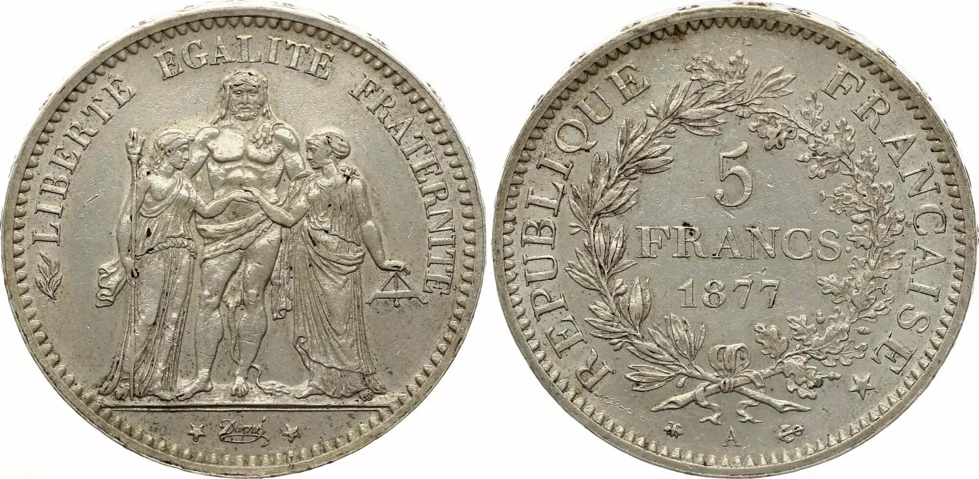 Pièce France 5 Francs Hercule - IIIeme République - 1877 A Paris - TTB