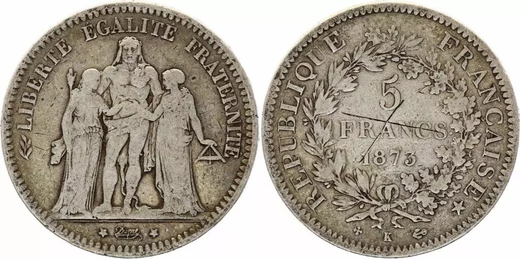 Coin France 5 Francs Hercules - Third Republic 1873 K Bordeaux - Silver