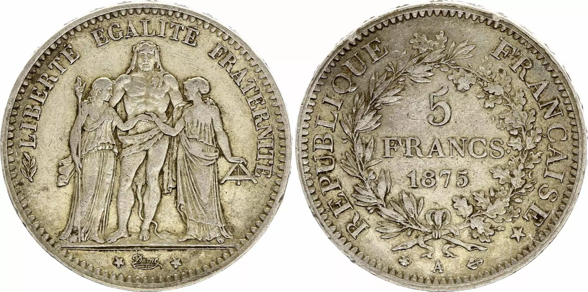 Home > > France 5 Francs - Hercules - Third Republic - 1875 A Paris