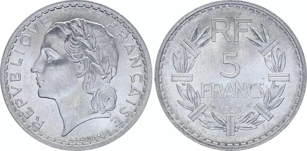 Coin France 5 Francs Lavrillier - 1947 UNC