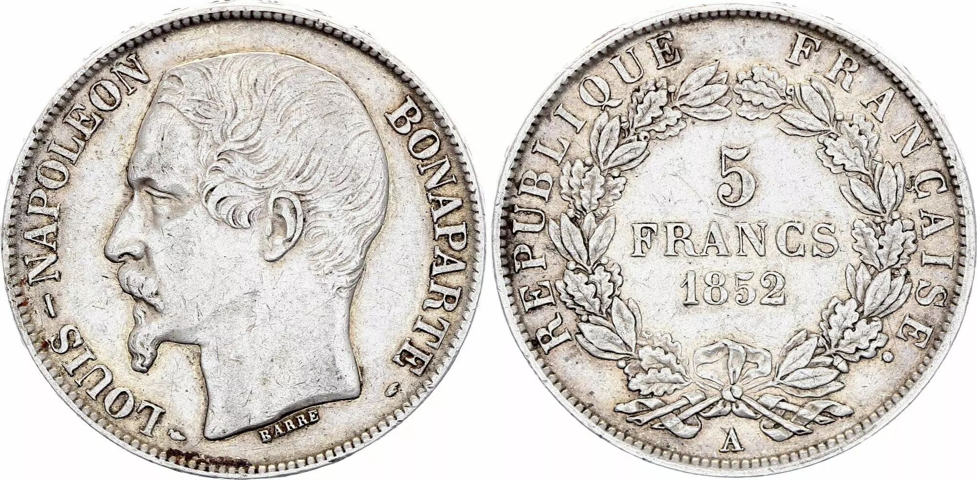 Accueil > Archivage > archivage-Monnaies françaises (470 à 2002) > France 5 Francs Louis-Napoléon Bonaparte - Tête étroite - 1852 A Paris - Argent