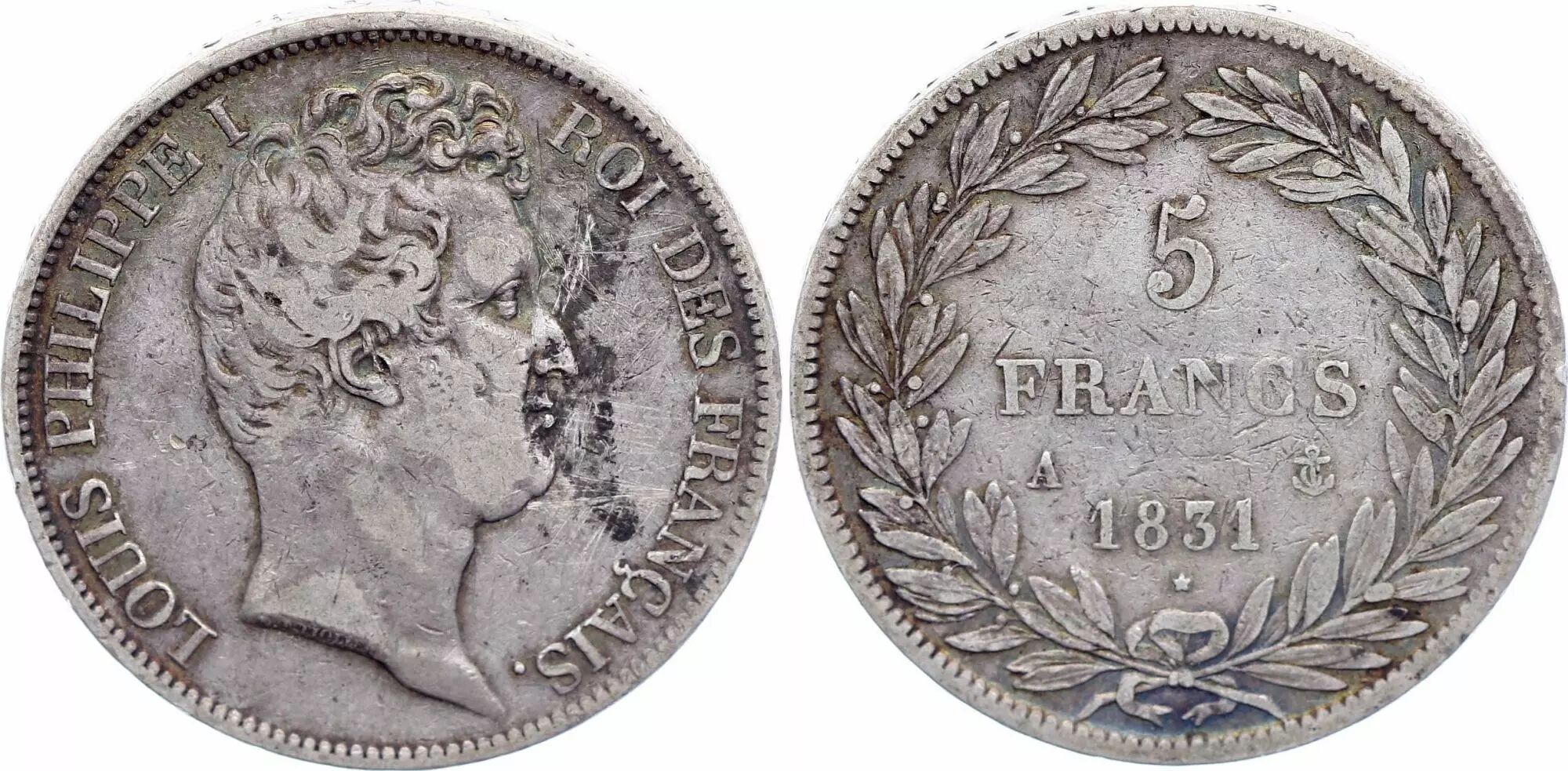 Home > > France 5 Francs Louis-Philippe 1831 A Paris raised lettering - Silver