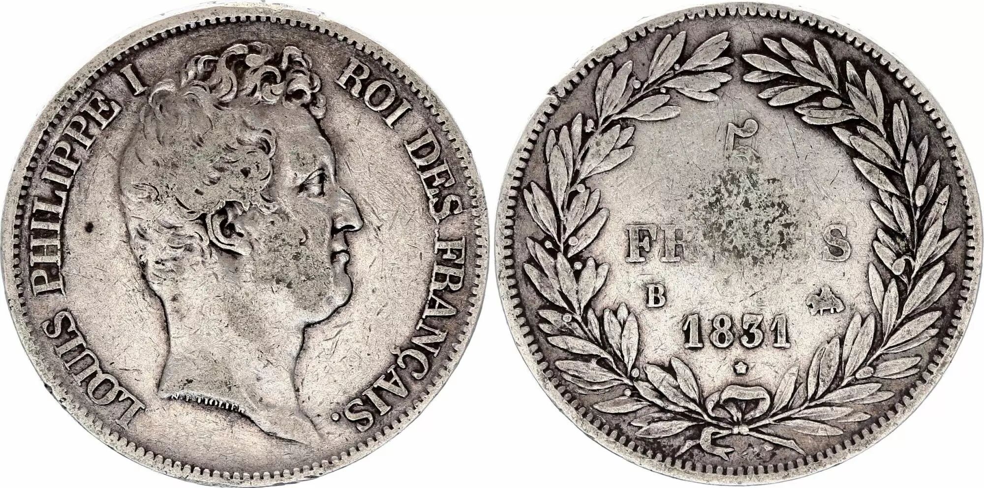 Accueil > Archivage > France 5 Francs Louis-Philippe 1831 B Rouen Argent - en creux