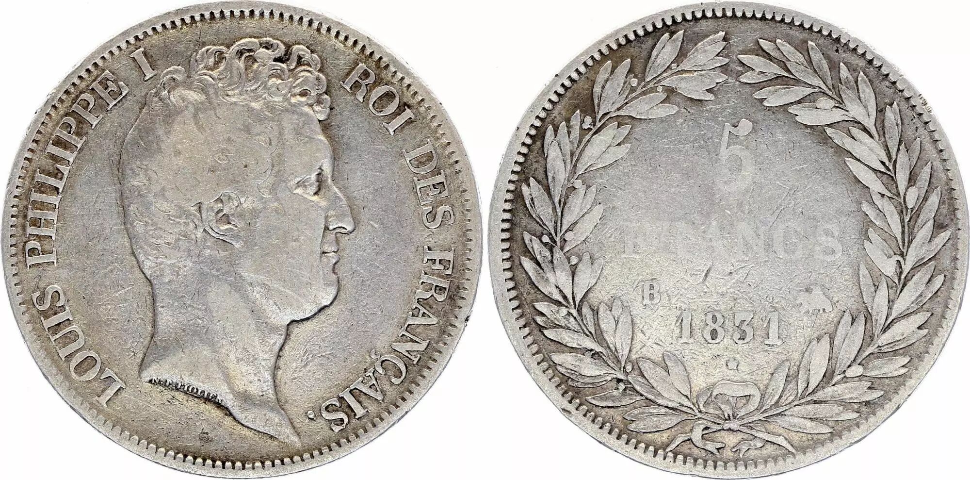 Home > > France 5 Francs Louis-Philippe 1831 B Rouen incuse lettering - Silver