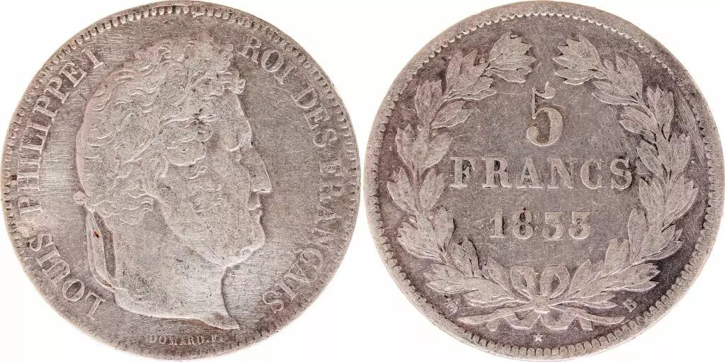 Coin France 5 Francs Louis-Philippe 1st - 1833 B Rouen