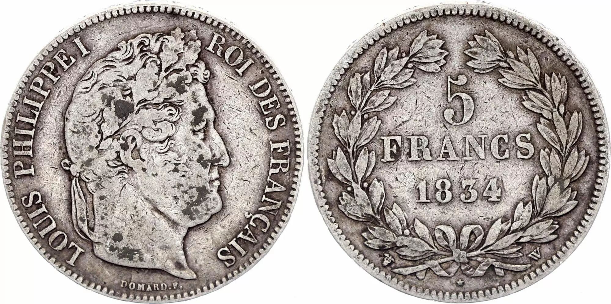 Pièce France 5 Francs Louis-Philippe I - 1834 W Lille - Argent