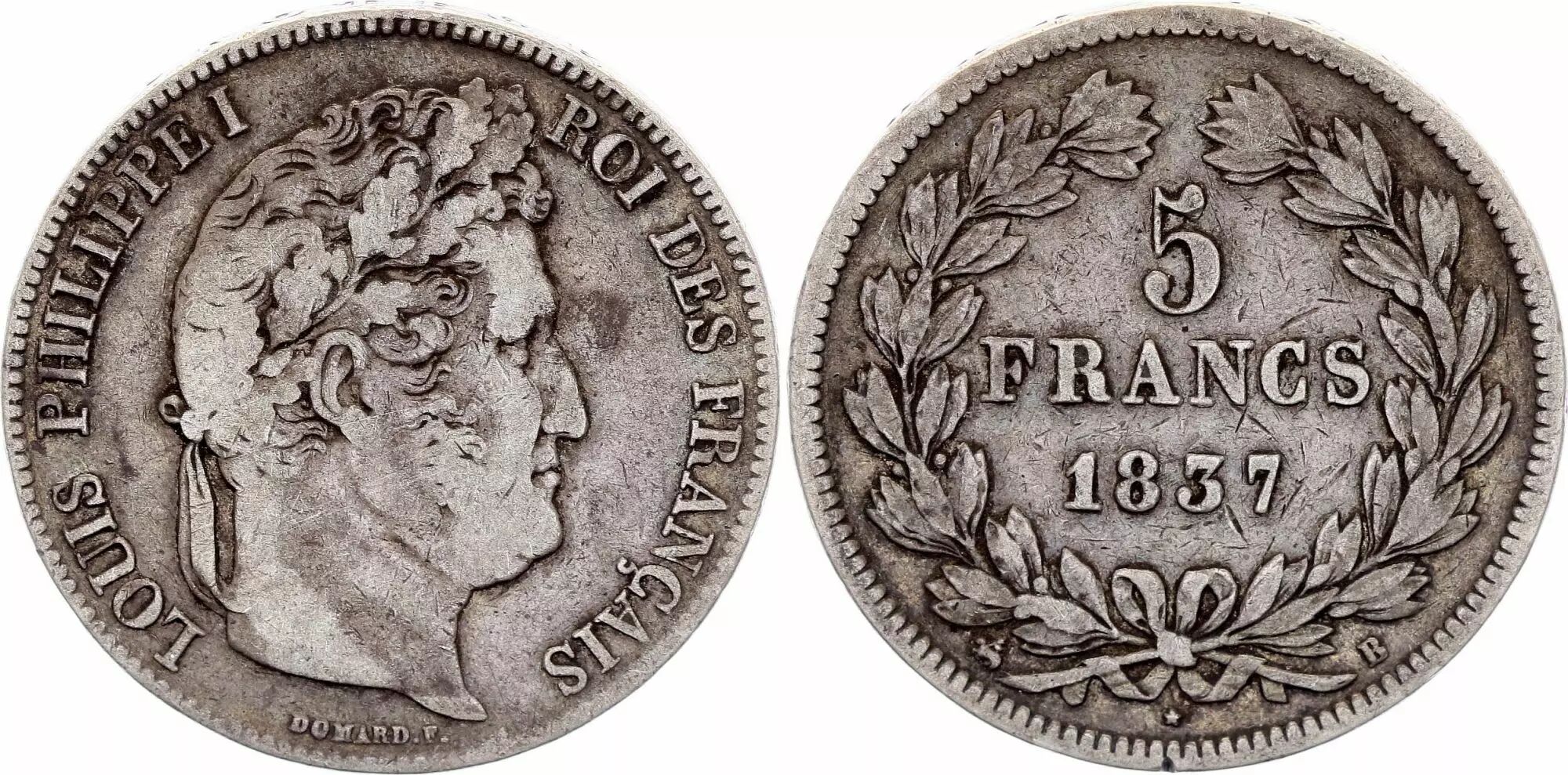 Accueil > Archivage > archivage-Monnaies françaises (470 à 2002) > France 5 Francs Louis-Philippe I - 1837 B Rouen - Argent