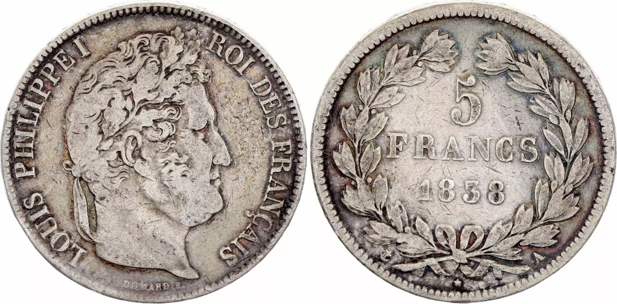 Coin France 5 Francs Louis-Philippe I - 1838 A Paris - Silver