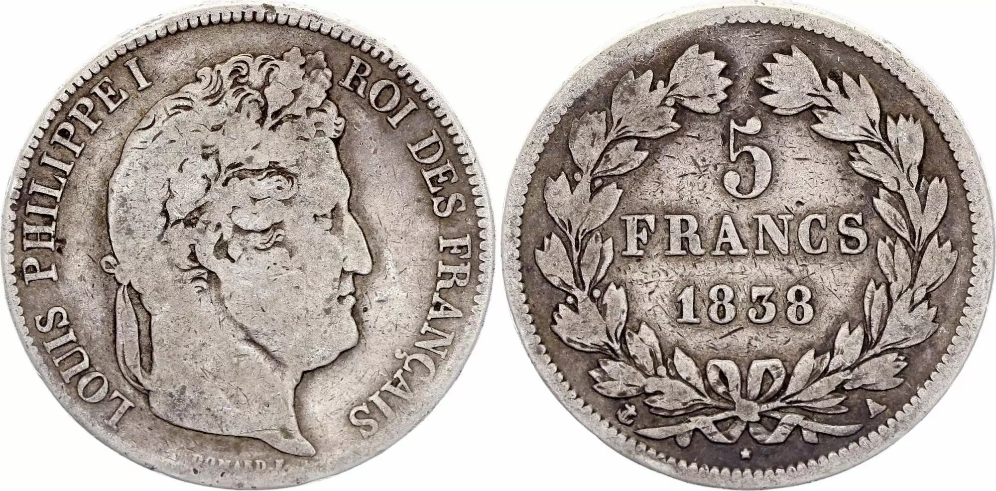 Home > > France 5 Francs Louis-Philippe I - 1838 A Paris - Silver
