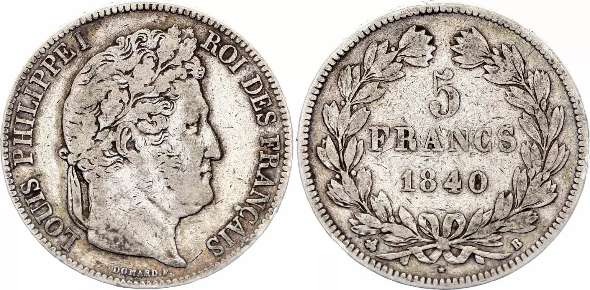 Pièce France 5 Francs Louis-Philippe I - 1840 B Rouen - Argent
