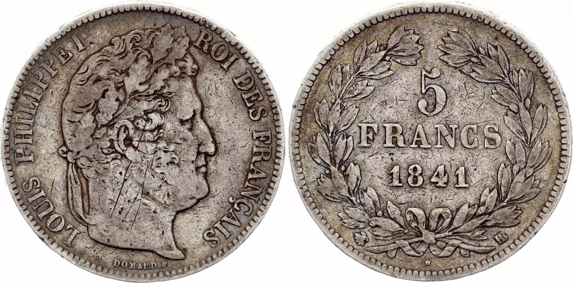Home > > France 5 Francs Louis-Philippe I - 1841 BB Strasbourg - Silver