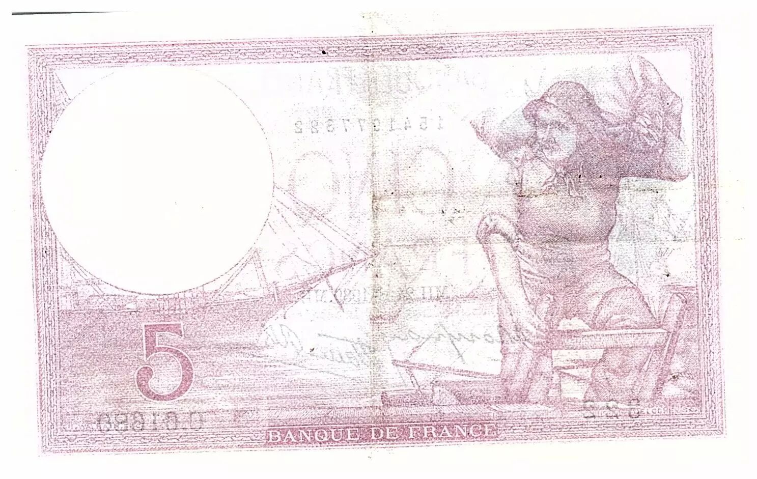 Banknote France 5 Francs Modified helmeted woman - 24-08-1939- Serial V.61183 - F.04.07