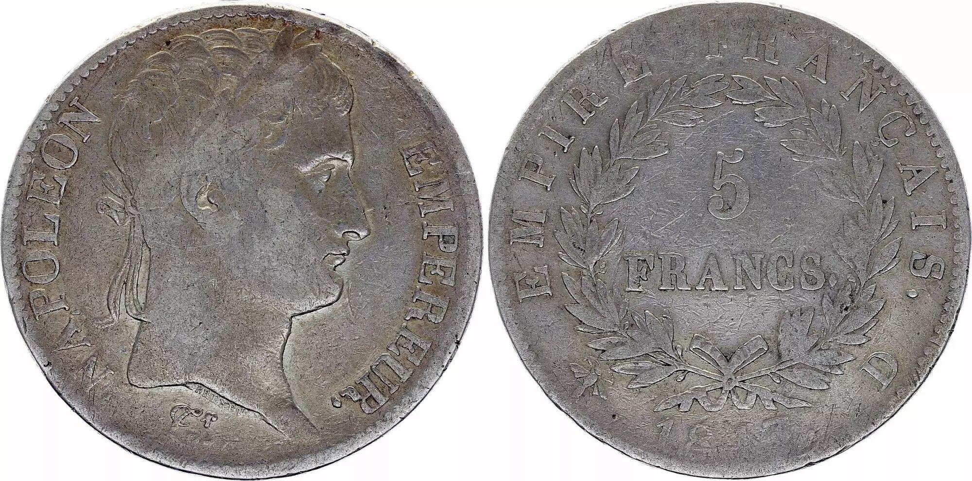 Accueil > Archivage > France 5 Francs Napoléon I - 1813 D Lyon - Argent - TB