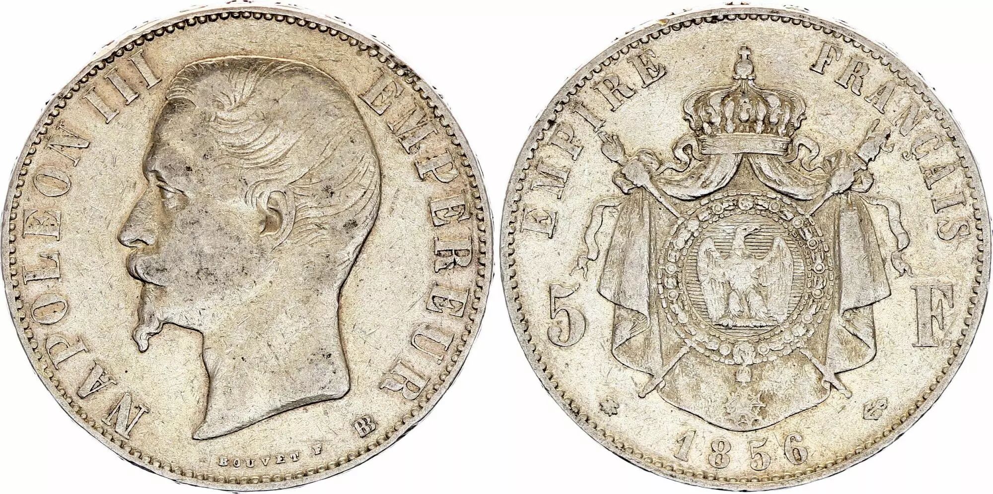 Coin France 5 Francs Napoléon III - 1856 BB - Silver