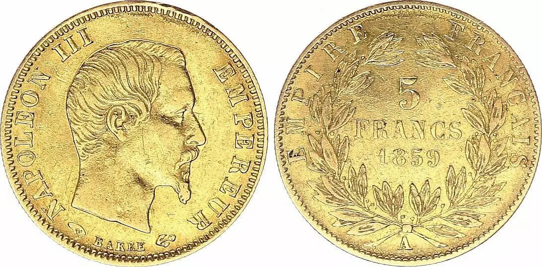 Home > > France 5 Francs Napoléon III Empereur - 1859 A - Gold