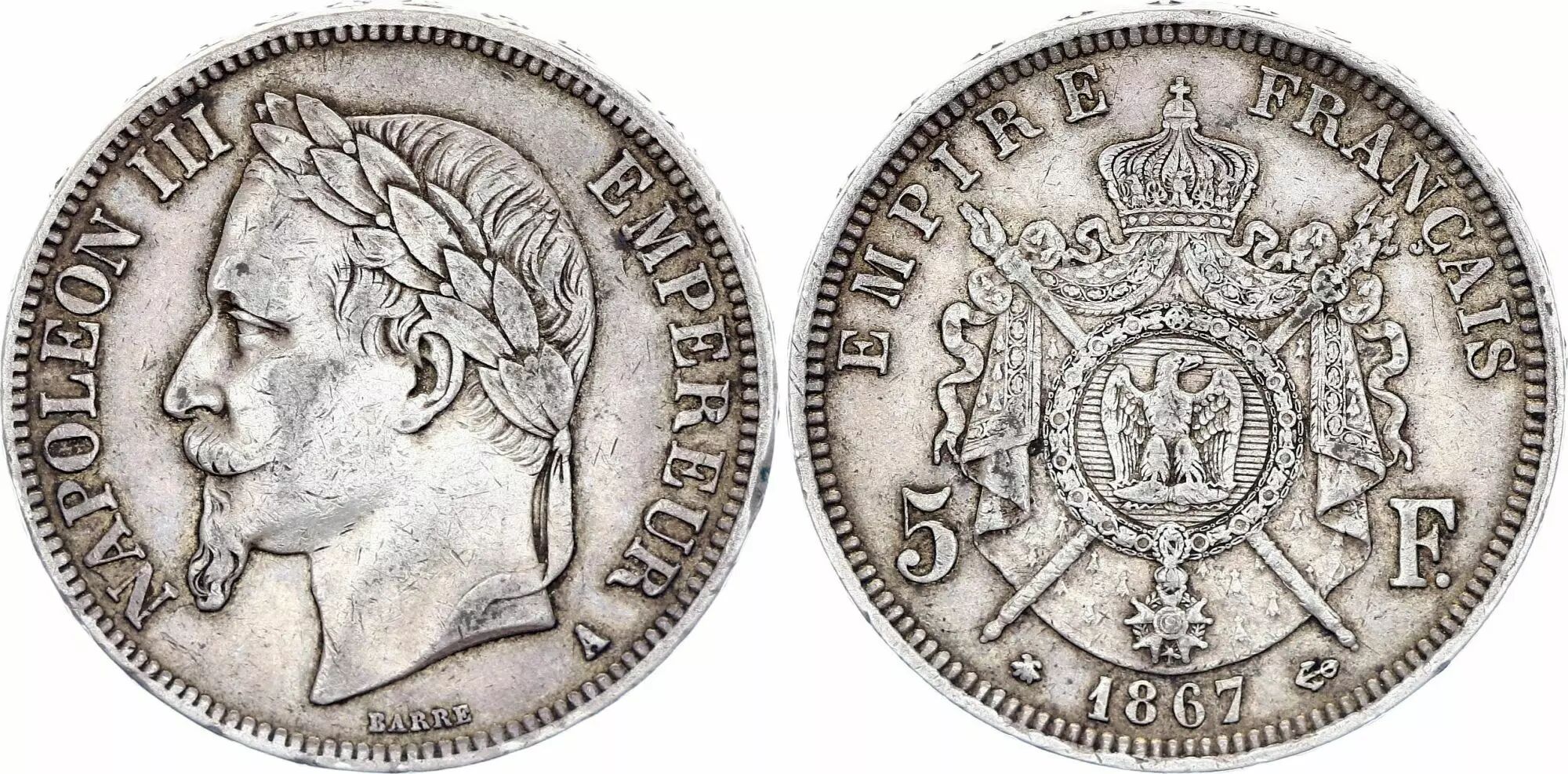 Home > > France 5 Francs - Napoléon III - Laurelled Head - A Paris - 1867