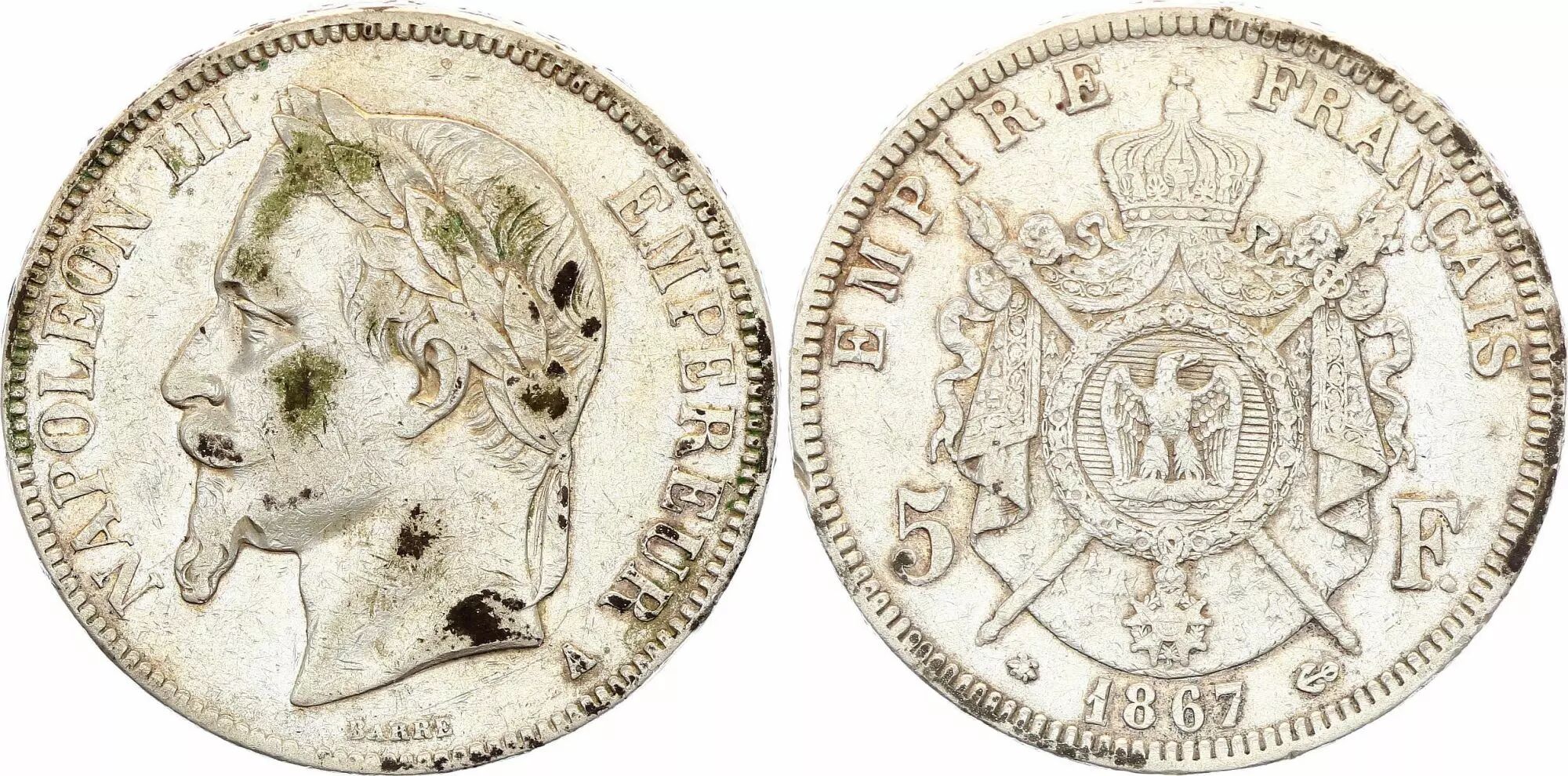 Home > French coins (470 à 2002) > Modern Currencies (1789 to 2002) > 5 Francs > France 5 Francs - Napoléon III - Laurelled Head - A Paris - 1867