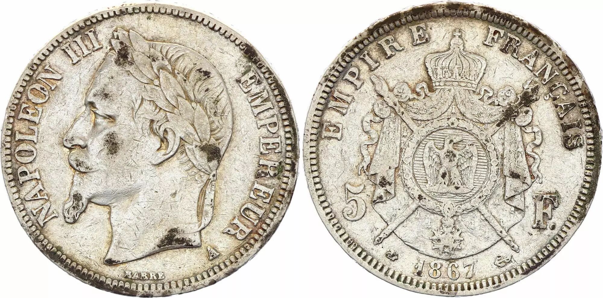 Home > French coins (470 à 2002) > Modern Currencies (1789 to 2002) > 5 Francs > France 5 Francs - Napoléon III - Laurelled Head - A Paris - 1867