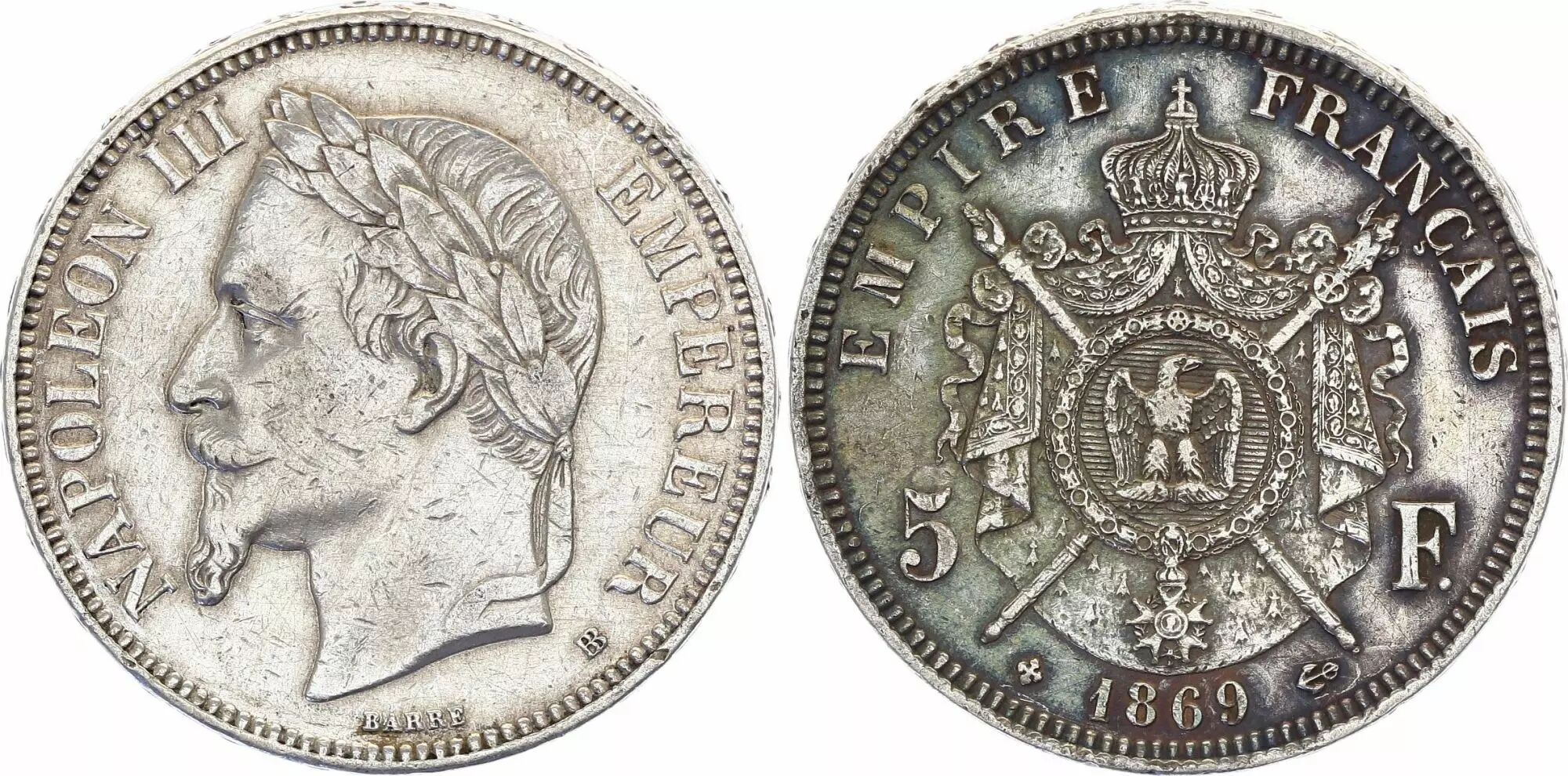 Home > > France 5 Francs - Napoléon III - Laurelled Head - Strasbourg - 1869
